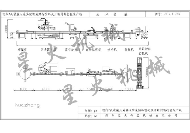 >> 理瓶2頭灌裝真空旋蓋貼標噴碼收瓶及開箱封箱打包生產(chǎn)線