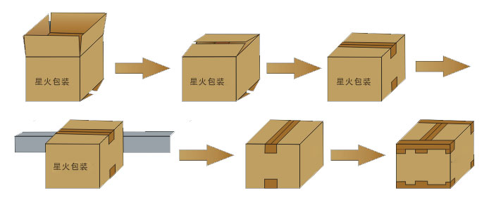第二步:進(jìn)入一字型折蓋封箱機(jī)——自動(dòng)進(jìn)行一字型封箱;