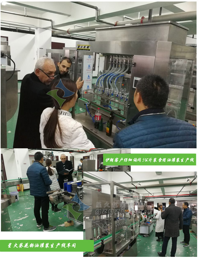 目前市面上常見的食用油包裝多數(shù)是5L即5公斤包裝的,我們星火包裝機(jī)械也專門推出了針對5L裝食用油的灌裝生產(chǎn)線設(shè)備,這條灌裝生產(chǎn)線有灌裝機(jī)-壓蓋機(jī)-貼標(biāo)機(jī)-噴碼機(jī)等設(shè)備組成,一上市就受到廣大油類生產(chǎn)商的追捧,伊朗的客戶再經(jīng)過電話簡單了解之后也專程來到我們的車間參觀并進(jìn)行了詳細(xì)的咨詢